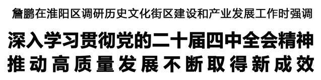 本報(bào)訊 (記者 李鳳霞 何晴) 10月29日,市長詹鵬到淮陽區(qū)調(diào)研歷史文化街區(qū)建設(shè)和產(chǎn)業(yè)發(fā)展工作,強(qiáng)調(diào)要深入學(xué)習(xí)貫徹黨的二十屆四中全會(huì)精神,扎實(shí)推進(jìn)產(chǎn)業(yè)高質(zhì)量發(fā)展,鞏固壯大實(shí)體經(jīng)濟(jì)根基,奮力譜寫中原大地推進(jìn)中國式現(xiàn)代化周口新篇章。張建黨、王文峰參加調(diào)研。