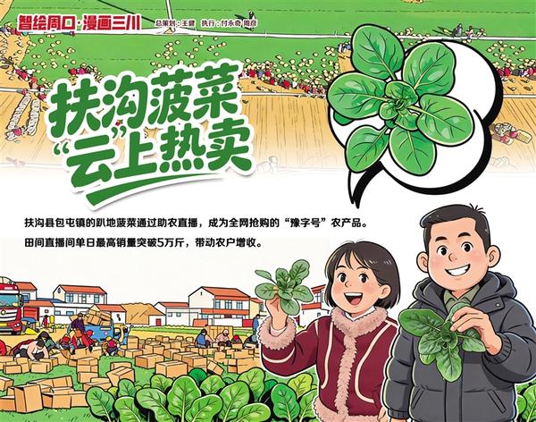 2025年12月29日,一位網(wǎng)名為“天津秀姐說房”的河南老鄉(xiāng),在齊聰叢直播間購買了趴地菠菜,一句“這才是自由生長的菠菜,甜絲絲的家鄉(xiāng)味”,如一粒石子墜入網(wǎng)絡(luò)的湖面,激起萬千游子的鄉(xiāng)愁共鳴。視頻不脛而走,流量如春潮涌動(dòng),不僅帶火了扶溝趴地菠菜,更讓扶溝其他農(nóng)產(chǎn)品迎來熱銷。