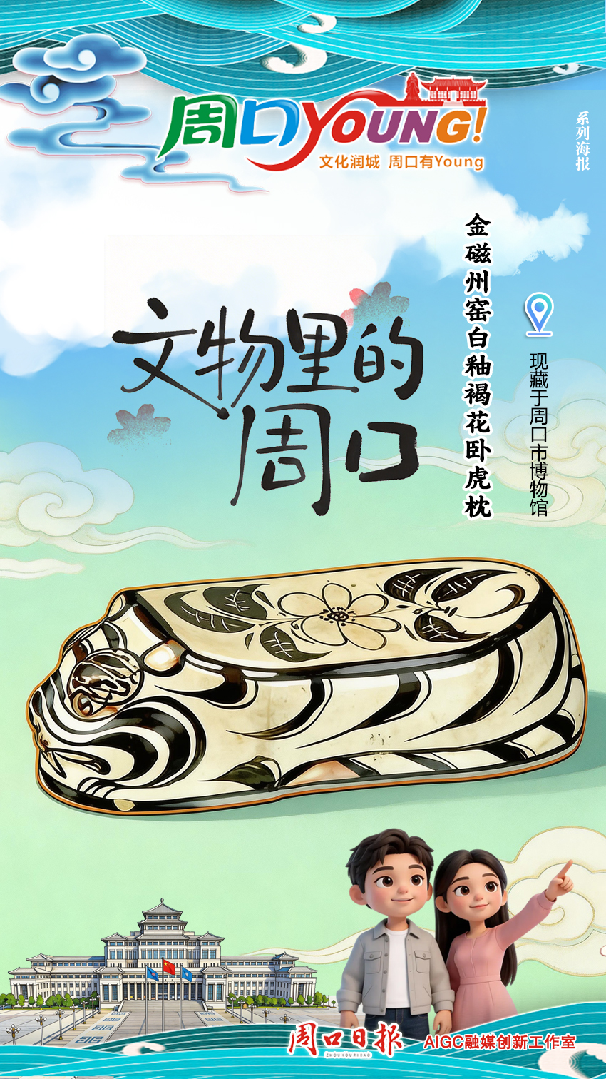 【周口young!】文物里的周口——金磁州窯白釉褐花臥虎枕