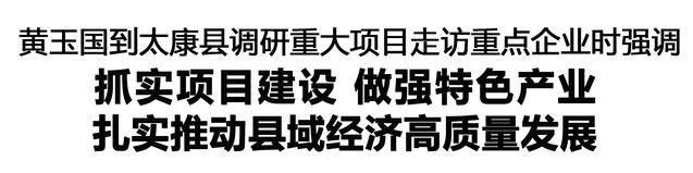 調(diào)研中,黃玉國聽取太康縣項目建設(shè)、招商引資等重點工作情況匯報,強調(diào)要堅持穩(wěn)中求進,進一步認(rèn)清形勢,增強壓力感、緊迫感和責(zé)任感,全力扭轉(zhuǎn)經(jīng)濟增長乏力局面。要抓緊抓實項目建設(shè),真正把工作重心和精力放在抓項目上,堅持向政策要機遇、向市場要項目,保證數(shù)量、做實項目、提升效益,算好投入產(chǎn)出賬,以高質(zhì)量項目支撐縣域經(jīng)濟高質(zhì)量發(fā)展。要努力提升城鄉(xiāng)面貌,用心用力加強城市建設(shè)管理,持續(xù)推進農(nóng)村人居環(huán)境整治,做優(yōu)商貿(mào)服務(wù)業(yè),激活城鄉(xiāng)發(fā)展活力。要振奮精神、強力作為、狠抓落實,領(lǐng)導(dǎo)干部要帶頭樹立和踐行正確政績觀,敢擔(dān)當(dāng)、作表率,堅定發(fā)展信心,勇于攻堅克難,健全工作機制,鼓勵擔(dān)當(dāng)作為,以新氣象新作為推動各項工作取得新成效。