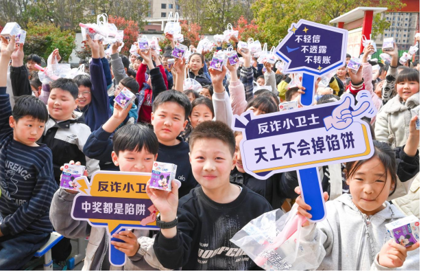 “警惕陌生來電”“中獎都是陷阱”“96110”等反詐手舉牌,增強了宣傳的趣味性和傳播力?,F(xiàn)場派發(fā)了家校安全共育防詐騙倡議書與定制反詐鑰匙扣,特別準備了安全、營養(yǎng)的學生奶,幫助同學們適時補充能量、提高專注力,為反詐安全教育活動保駕護航。