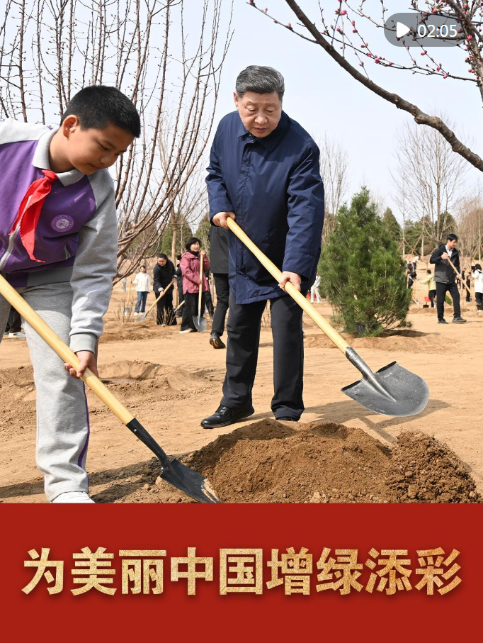 3月30日,習(xí)近平總書記在參加首都義務(wù)植樹活動時,接連種下油松、北京牡丹、榆葉梅、杜仲、元寶楓等多棵樹苗。不同樹種繪就四季斑斕,為山川大地增添錦繡。