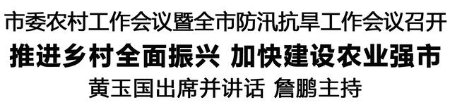 黃玉國(guó)要求,要堅(jiān)持把黨的領(lǐng)導(dǎo)貫徹到“三農(nóng)”工作、防汛抗旱工作的全過程各方面,壓緊責(zé)任鏈條,堅(jiān)持務(wù)實(shí)重干,提升能力本領(lǐng),凝聚工作合力,確保責(zé)任上肩、組織到位、措施落實(shí),不斷開創(chuàng)全市“三農(nóng)”工作新局面,打好打贏防災(zāi)減災(zāi)救災(zāi)主動(dòng)仗。