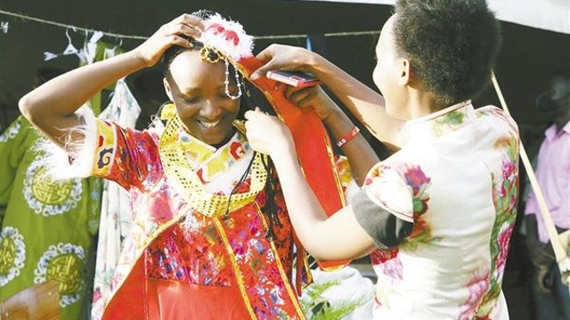 11月10日,學生在盧旺達卡永扎試穿中國服飾?!?a href="http://m.shjcele.com/content/2021-11/13/content_959142.html" target="_blank" >[詳細]