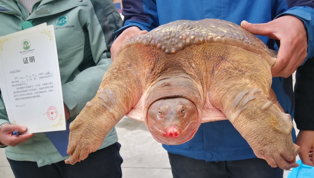 近日,鄲城縣自然資源局接到縣城市管理局公園管理辦公室工作人員救助電話,稱在人民公園岸邊又發(fā)現(xiàn)一只“大老鱉”。接到救助電話后,該局領(lǐng)導(dǎo)立即指派野生動(dòng)植物保護(hù)和自然保護(hù)地管理股工作人員前往現(xiàn)場救助?!?a href="http://m.shjcele.com/content/2021-03/23/content_925978.html" target="_blank" >[詳細(xì)]