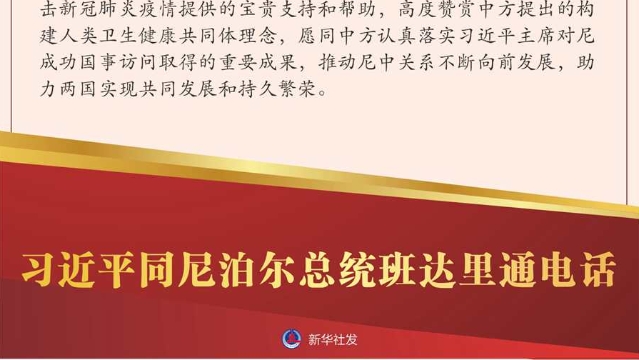 習(xí)近平指出,新冠肺炎疫情發(fā)生后,中尼兩國堅定支持彼此抗疫努力,深入開展抗疫合作,彰顯了守望相助、同舟共濟的精神。