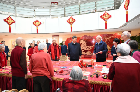 春節(jié)前夕,中共中央總書記、國家主席、中央軍委主席習近平等黨和國家領導人分別看望或委托有關方面負責同志看望了胡錦濤、朱镕基、李瑞環(huán)、溫家寶、賈慶林、張德江、俞正聲、栗戰(zhàn)書、汪洋、宋平、李嵐清、曾慶紅、吳官正、李長春、羅干、賀國強、劉云山、王岐山、張高麗和田紀云、遲浩田、王樂泉、王兆國、回良玉、劉淇、吳儀、曹剛川、曾培炎、王剛、劉延東、李源潮、馬凱、孫春蘭、李建國、范長龍、孟建柱、郭金龍、王晨、劉鶴、楊潔篪、楊曉渡、陳全國、郭聲琨、王漢斌、何勇、杜青林、趙洪祝、尤權(quán)、李鐵映、許嘉璐、蔣正華、顧秀蓮、盛華仁、路甬祥、華建敏、陳至立、司馬義·鐵力瓦爾地、蔣樹聲、王勝俊、陳昌智、嚴雋琪、張平、向巴平措、張寶文、曹建明、張春賢、吉炳軒、艾力更·依明巴海、萬鄂湘、陳竺、白瑪赤林、唐家璇、戴秉國、常萬全、趙克志、韓杼濱、賈春旺、宋健、胡啟立、王忠禹、李貴鮮、郝建秀、徐匡迪、張懷西、李蒙、廖暉、白立忱、陳奎元、阿不來提·阿不都熱西提、李兆焯、黃孟復、張梅穎、張榕明、錢運錄、孫家正、李金華、鄭萬通、鄧樸方、厲無畏、陳宗興、王志珍、韓啟德、林文漪、羅富和、李海峰、陳元、周小川、王家瑞、齊續(xù)春、馬培華、劉曉峰、王欽敏、張慶黎、劉奇葆、董建華、萬鋼、盧展工、王正偉、馬飚、陳曉光、楊傳堂、李斌、汪永清、辜勝阻、劉新成等老同志,向他們致以誠摯的節(jié)日問候,衷心祝愿他們新春愉快、健康長壽。