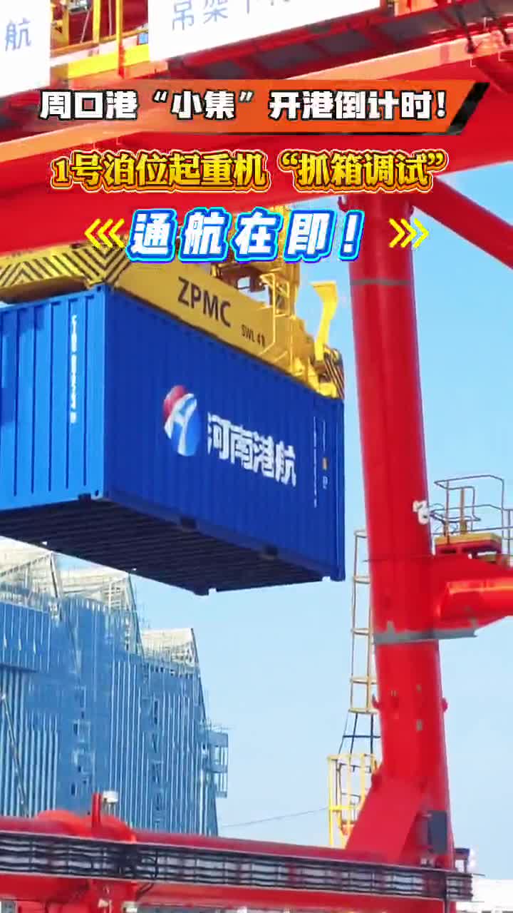 周口港“小集”開(kāi)港倒計(jì)時(shí)!1號(hào)泊位起重機(jī)“抓箱調(diào)試”,通航在即!
