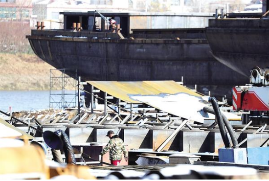 12月14日,周口某造船廠內(nèi),工人們正在緊張作業(yè)。依托沙潁河千噸級航道優(yōu)勢,周口造船業(yè)蓬勃發(fā)展,2000噸級貨船訂單覆蓋蘇、皖、浙等地?!爸芸谠臁必洿瑥纳碀}河啟航,通江達(dá)海,為港城融合發(fā)展注入強(qiáng)勁動力。