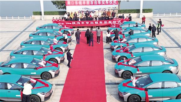 12月19日上午,周口和諧廣場舉行純電動出租車交付儀式,一百輛全新純電動轎車正式交付扶溝出租車公司并投入運(yùn)營。