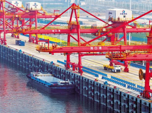 這是3月31日拍攝的周口港中心港區(qū)中心作業(yè)區(qū)碼頭(無(wú)人機(jī)照片)。 作為全國(guó)36個(gè)內(nèi)河主要港口之一,河南周口港近年來(lái)不斷拓展對(duì)外開(kāi)放格局,深度融入國(guó)際國(guó)內(nèi)港口群。