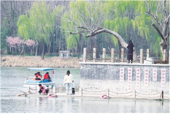 3月19日,沈丘縣中華槐園內綠意盎然、景色宜人。市民趁著晴好天氣走出家門,漫步園區(qū),拍照留影、休閑散心,盡享春日愜意時光。