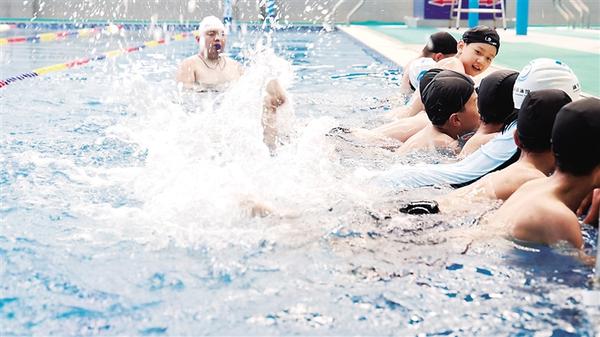 學(xué)生在教練的指導(dǎo)下進(jìn)行游泳訓(xùn)練。近日,項城市清華育英學(xué)校將防溺水課堂“搬”進(jìn)游泳館,開展“沉浸式”防溺水安全教育活動。