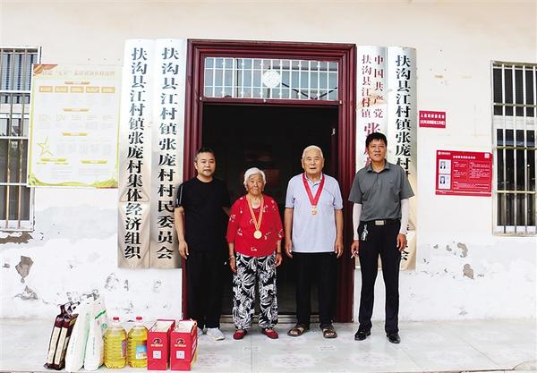 7月1日,扶溝縣委宣傳部駐江村鎮(zhèn)張龐行政村第一書(shū)記齊華中(左一)和村“兩委”干部走訪慰問(wèn)該村兩位黨齡超過(guò)50年的黨員,為他們送去黨組織的關(guān)懷與溫暖。據(jù)了解,90歲的張秀真(左二),1957年入黨。76歲的劉學(xué)明(左三),1970年入黨。