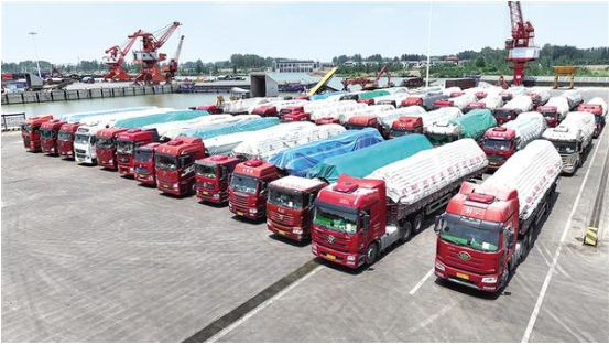 沙潁河畔,秋意正濃。一艘艘滿載貨物的船舶踏浪而行,駛向周口港范營作業(yè)區(qū)。碼頭上,龍門吊高聳入云,運(yùn)輸車輛川流不息,工人們忙碌作業(yè),呈現(xiàn)出一派欣欣向榮的景象。