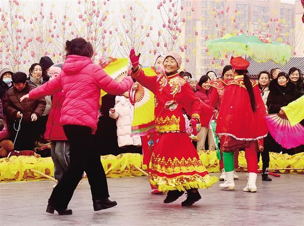 1月30日下午,一名市民興奮地加入到扭秧歌隊伍中。當天,關帝廟景區(qū)民俗節(jié)目表演精彩紛呈,人們在逛春會、賞民俗中開心過大年。