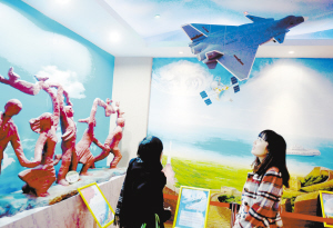 “中國(guó)夢(mèng)”文化館在京開館      3月8日,人們?cè)凇爸袊?guó)夢(mèng)”文化館內(nèi)參觀殲-20戰(zhàn)斗機(jī)模型。當(dāng)日,由中國(guó)教育策劃學(xué)術(shù)研究會(huì)設(shè)立的“中國(guó)夢(mèng)”文化館在北京通州區(qū)于家務(wù)中學(xué)開館。新華社記者 金良快 攝