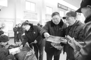 3月6日,“關(guān)愛農(nóng)民工法治宣傳周”集中宣傳活動(dòng)在周口客運(yùn)中心站門前舉行,相關(guān)單位設(shè)立咨詢服務(wù)臺,發(fā)放宣傳資料,回答群眾咨詢。記者 王映  攝