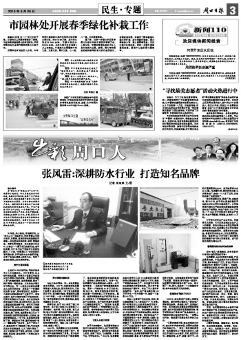 20年前,年少的他,懷揣著好奇,從 “防水之鄉(xiāng)”項(xiàng)城走出,奔向夢(mèng)寐以求的大都市。在那里,繁重的勞動(dòng)和殘酷的環(huán)境差一點(diǎn)擊碎他年輕的夢(mèng)。然而,要強(qiáng)的他,憑借機(jī)靈和勤奮,在北京防水行業(yè)中,打拼出一個(gè)屬于自己的新天地。他叫張風(fēng)雷,1977年出生于項(xiàng)城市三店鎮(zhèn)張寨村。2月初,“出彩周口人”采訪團(tuán)的記者來到北京,在百創(chuàng)防水企業(yè)集團(tuán)總部,分享了他創(chuàng)業(yè)道路上的苦與樂,聆聽了他創(chuàng)業(yè)道路上的光榮和夢(mèng)想。
