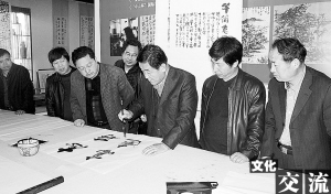 交流期間,兩地書法家飽蘸激情、揮毫潑墨,互相切磋技藝,在近兩個小時的時間里,創(chuàng)作出優(yōu)秀書法作品近百幅。參加交流活動的書法家們表示,此次書法交流筆會的舉辦,為兩地書法家提供了一個切磋技藝、互相交流、互相促進(jìn)的平臺。他們將借此虛心學(xué)習(xí),取長補(bǔ)短,不斷提高書法藝術(shù)水平,努力提升作品質(zhì)量,以更好地豐富當(dāng)?shù)厝嗣袢罕姷奈幕睢?/P>