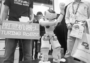 4月28日,觀眾在2015全球移動互聯(lián)網(wǎng)大會上觀看一款語音識別智能機器人。當日,為期3天的2015全球移動互聯(lián)網(wǎng)大會在北京開幕,大會匯聚了來自全球移動互聯(lián)網(wǎng)公司的創(chuàng)新領袖,探討行業(yè)熱點,分享全球移動互聯(lián)網(wǎng)領域的重大機遇與變革。
