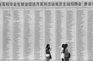 江蘇南京舉辦大學生專場招聘會      5月10日,在南京國際展覽中心,大學生在瀏覽用人單位招聘信息。當日,2015年江蘇省高校畢業(yè)生就業(yè)促進月系列活動南京主場招聘會在南京國際展覽中心舉行,千余家用人單位提供了3萬多個就業(yè)崗位,引來近4萬名大學生前來洽談應聘。新華社發(fā)
