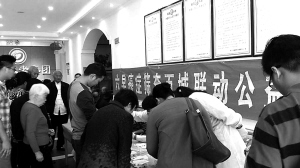 環(huán)衛(wèi)工人在活動(dòng)現(xiàn)場(chǎng)領(lǐng)取檢測(cè)試劑