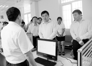 市委書記、市人大常委會主任徐光帶領(lǐng)觀摩組在周口港口物流產(chǎn)業(yè)集聚區(qū)未來家園社區(qū)服務(wù)中心觀摩。