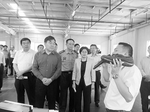 市長劉繼標(biāo)帶領(lǐng)第二觀摩組在扶溝縣玖弘鞋業(yè)有限公司生產(chǎn)車間觀摩。