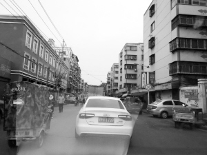 商戶在六一路上私拉亂扯的電線垂落,距離地面不足兩米,嚴(yán)重影響車輛通行。