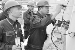 電工裁判員在對比賽選手的作品進行細致檢查評分。