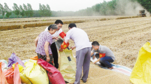 上圖:6月7日,商水縣鄧城鎮(zhèn)督查隊員在幫許村困難戶張翠蘭收麥子。三夏期間,該鎮(zhèn)成立16支三夏幫扶隊和督查隊,深入田間地頭幫助困難戶夏收夏種。(喬連軍 攝)
