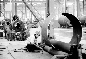 近年來,太康縣裝備制造園區(qū)被省工業(yè)和信息化廳評(píng)為特色裝備(工業(yè)鍋爐)制造園區(qū),成為中部地區(qū)最大的鍋爐壓力容器生產(chǎn)基地。全縣現(xiàn)有鍋爐壓力容器制造企業(yè)14家,其中A級(jí)鍋爐企業(yè)5家,年生產(chǎn)能力2.65萬蒸噸以上。圖為該縣四通鍋爐廠生產(chǎn)車間一角。(記者 沈湛 攝)
