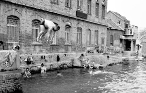 7月14日,一名濟(jì)南市民在濟(jì)南市王府池子跳水游泳。當(dāng)天,濟(jì)南市最高氣溫超過39攝氏度,為10年以來同期最高氣溫。