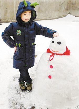 漫天的雪花,潔白的大地,這個冬天難得的景色讓小記者們激動不已,打雪仗,堆雪人……這雪天里的傳統(tǒng)娛樂項目,讓小記者和家長們感覺不到一絲寒冷,歡快的笑聲早把寒冷驅趕得無影無蹤。這不,我們的小記者和家長們一起動手堆起了雪人,胖胖的身子,大大的腦袋,長長的鼻子……雪人很快成長起來了。