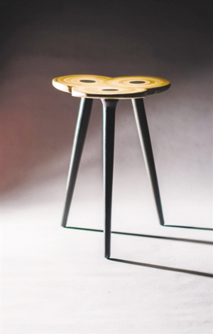遠看這個小凳并不是竹子的第一印象,但細細觀察才發(fā)現(xiàn)竹子被改變了一種“狀態(tài)”重新呈現(xiàn)。竹子是最“東方”的材料之一,許多中國設(shè)計師都喜歡用竹子的形、意來展開設(shè)計,據(jù)設(shè)計師林桓民介紹,這個竹凳是將竹子先“劈”成很薄很薄的片狀物,然后一圈一圈纏繞而成,當竹子的形態(tài)被改變后,和木頭支撐的完美結(jié)合也就造就了這把“同心竹凳”。